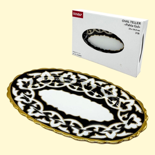 Oval'naya tarelka Pahta Gul' sine-zolotaya 3 sht. Uzbekistan 23 h 14,4 sm