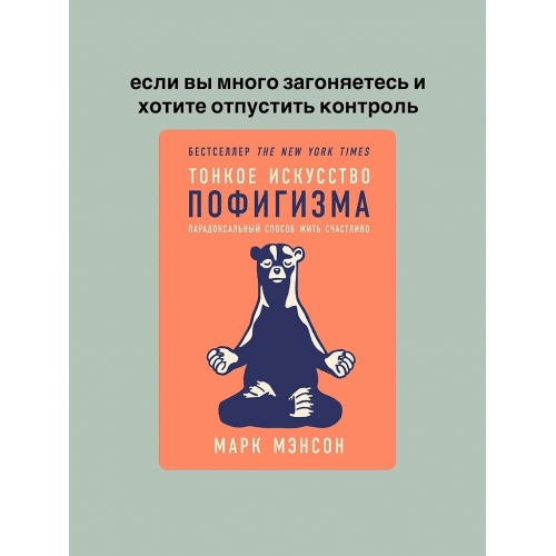 Современное общество пропагандирует культ успеха: будь умнее, богаче, продуктивнее — будь лучше всех. Соцсети изобилуют историями на тему, как какой-то малец придумал приложение и заработал кучу денег, статьями в духе «Тысяча и один способ быть счастливым», а фото во френдленте создают впечатление, что окружающие живут лучше и интереснее, чем мы. Однако наша зацикленность на позитиве и успехе лишь напоминает о том, чего мы не достигли, о мечтах, которые не сбылись. Как же стать по-настоящему счастливым? Популярный блогер Марк Мэнсон предлагает свой, оригинальный подход к этому вопросу. Его жизненная философия проста — необходимо научиться искусству пофигизма. Определив то, до чего вам действительно есть дело, нужно уметь наплевать на все второстепенное, забить на трудности, послать к черту чужое мнение и быть готовым взглянуть в лицо неудачам и показать им средний палец.